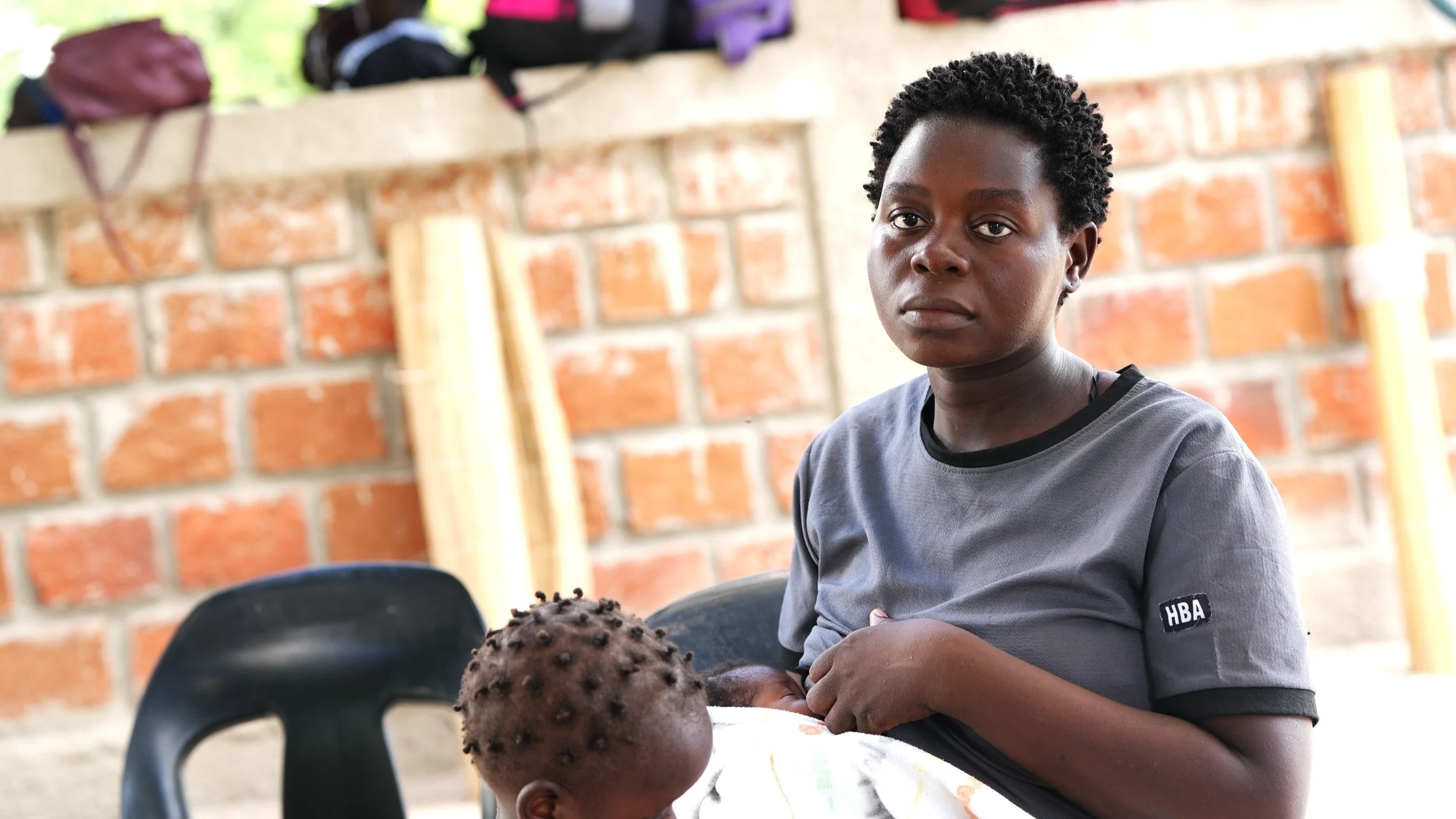 Nursing a newborn at a displacement camp